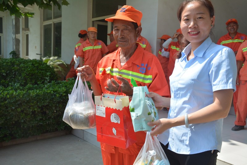 看到這一情形,山東德瑞克儀器有限公司給藥山街道的環(huán)衛工送上了綠豆、白糖、毛巾、香皂等解暑物品,為高溫下堅守崗位、任勞任怨、持續奮戰的他們送上一份清涼和關(guān)愛(ài)!并一再叮囑他們要做好防暑降溫工作,注意自己的身體,避開(kāi)午后高溫,更有效率地完成好清掃工作。